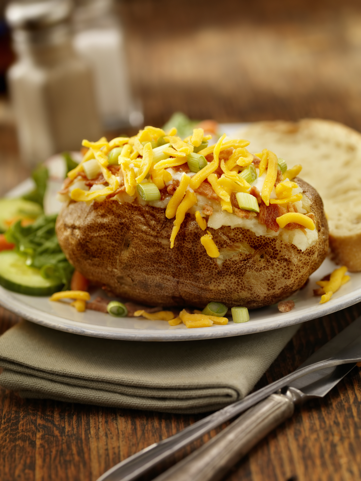 4. Divide turkey mixture into each potato shell. Top each with 2 tbsp of remaining cheese and microwave 2-4 minutes until cheese is melted. Top with remaining chives.