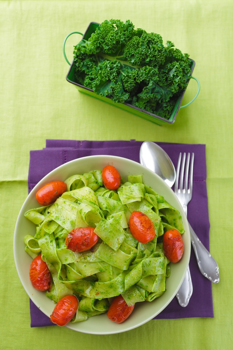 Vegan kale pesto pasta salad